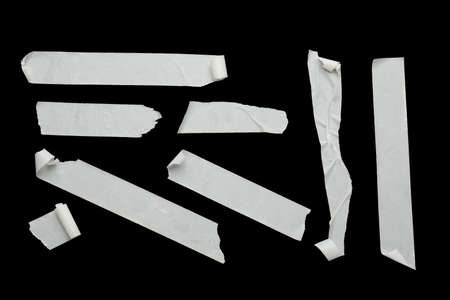 Captivating Collage Canvas: Whimsical Torn Paper with Adhesive Isolated Scotch Sticky Tape Pieces on a Black Background