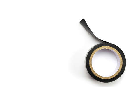 Adhesive sticky paper. black duct tape roll isolated on white background. Torn strip grunge texture