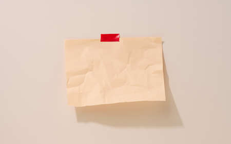 blank rectangular crumpled beige sheet of paper glued on a light beige background. Place for an inscription, announcement