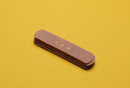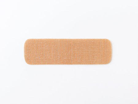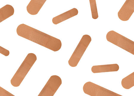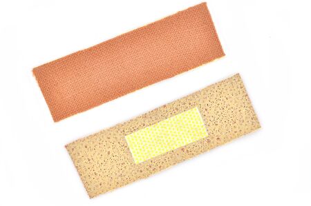 Brown textile sticky patch for wounds on the skin of the body, white background