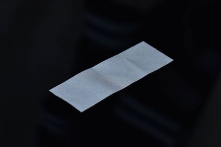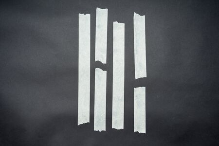 Set of white tapes on black background. Torn vertical and different size white sticky tape, adhesive pieces.