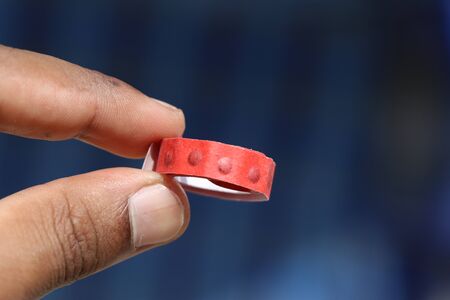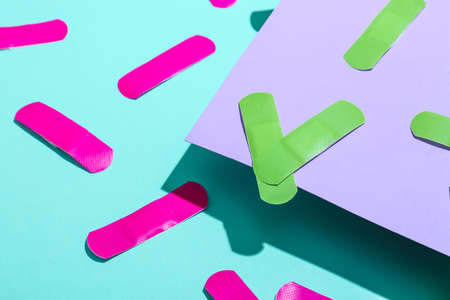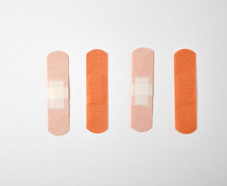 colored adhesive bandage plaster close up macro , isolated on a white background