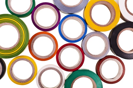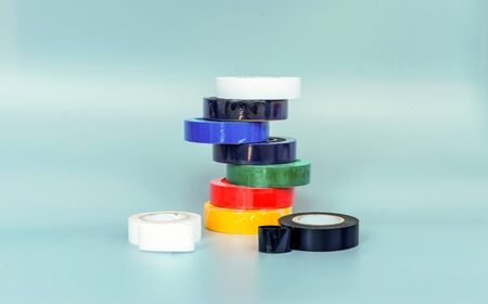 Rolls of insulation adhesive tape multicolored isolating tape. Close up.