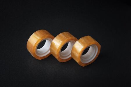 Rolls with scotch tape and decorative adhesive tapes for decorating gifts for the holidays. Background