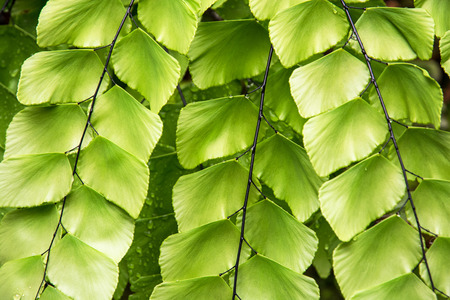 Adiantum capillus veneris venus hair fern house plant leaves macro shot detail.