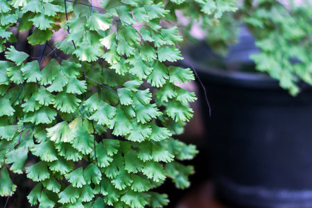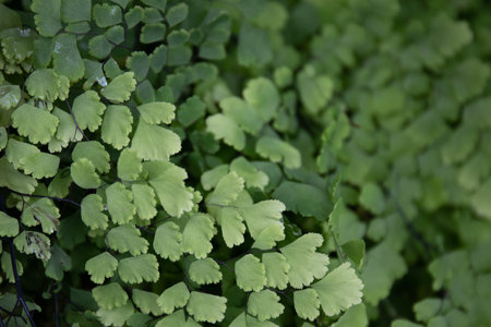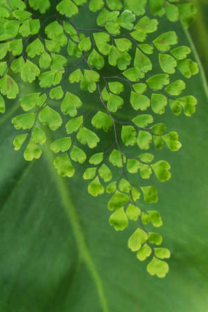 Adiantum capillus veneris venus hair fern house plant leaves macro shot detail.