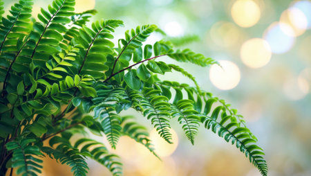 Lush green fern leaves basking in soft sunlight during a peaceful outdoor afternoon