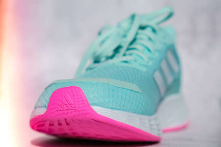 Tyumen, Russia-January 13, 2022: Adidas Running Shoes. adidas multinational company