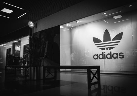 Szczecin, Poland. 23 December 2018. Sign Adidas. Company signboard Adidas.