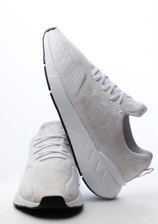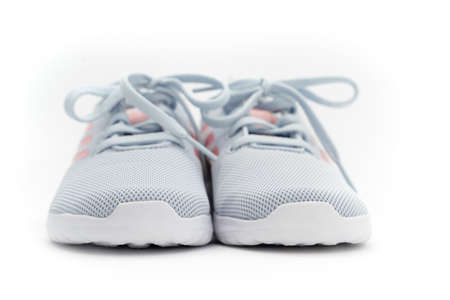 Clean pair of white sport shoes isolated on studio background