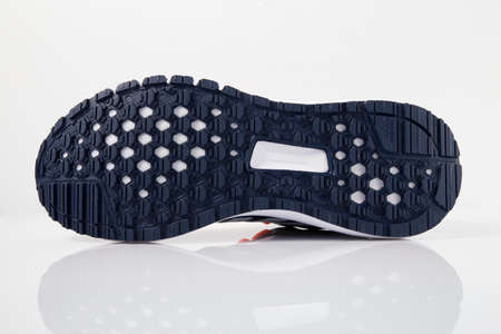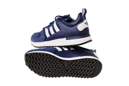 POZNAN, POL - OCT 13, 2022: A pair of Adidas sport shoes, the brand of the largest sportswear manufacturer in Europe and the second biggest in the world