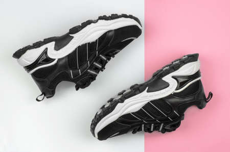 Stylish women's sneakers on a white and pink backgrounds. Women's sports shoes
