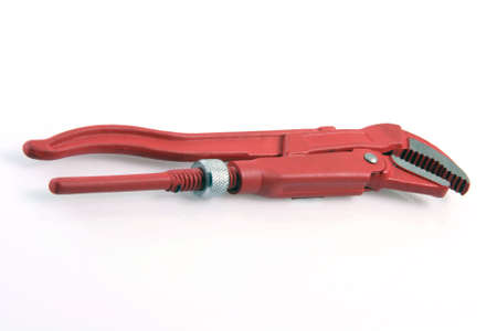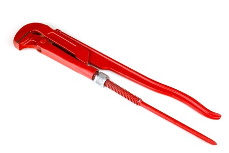 Red adjustable pipe wrench isolated on a white background
