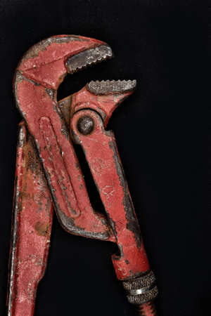 Red pipe wrench on black background