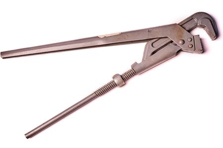 Old pipe wrench isolated on white background