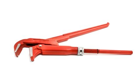 Orange pipe wrench on white background