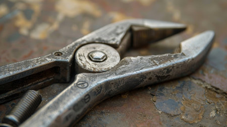A detailed close-up of vintage pliers resting on a rustic surface, showcasing the intricate design and worn textures ideal for DIY enthusiasts and professionals alike.