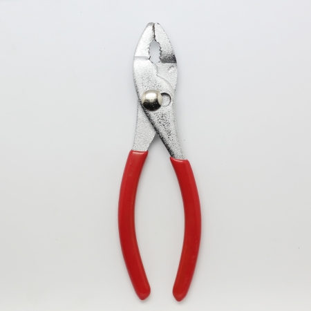 Isolated black and red stainless steel jaw locking pliers with rubber grips