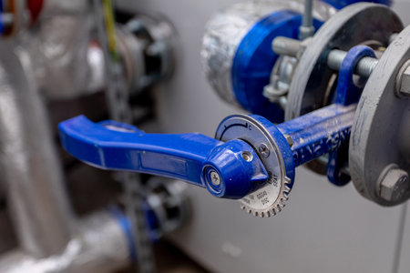 CloseUp of a Blue Valve Handle in Industrial Settings, highlighting its significance and function