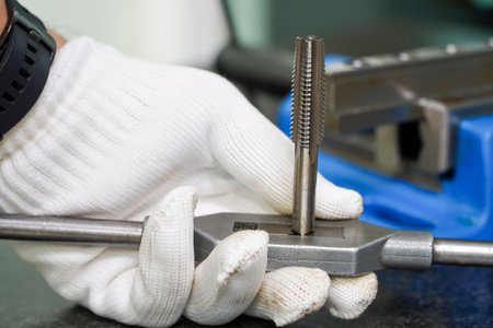 Mechanic wearing white gloves holding adjustable tap wrench handle,for threading tap wrench