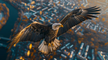 Majestic bald eagle soaring in the wild, symbolizing freedom and strength generated by artificial intelligence