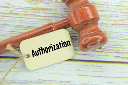 wooden hammers and wooden tags with the word authorization