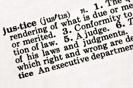 Dictionary definition of the word justice, in sepia tone.