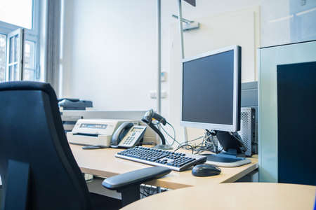 Interior of a modern office with computer and furniture. Nobody inside