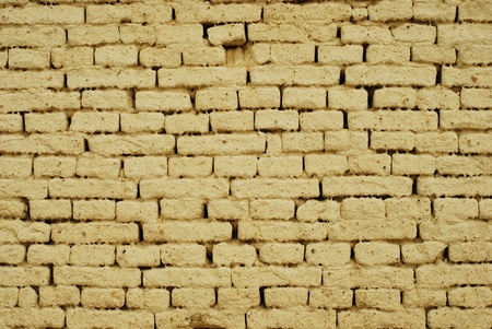 South America, Peru, Trujillo, Salaverry. Chan Chan, largest adobe city, 1000 year old capital of Chimu Kingdom. Old adobe brick wall detail for Background or Texture. Macro shot.