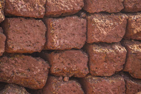 Red brick overlap.Red brick used in the construction of the wall.Red brick made of clay fire
