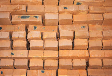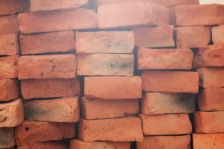 Heap of a red ceramic brick. A background on a theme about a building material.