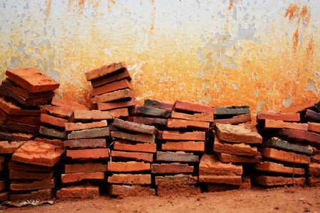 sun dried clay or mud bricks scattered at a work site in Malaysia