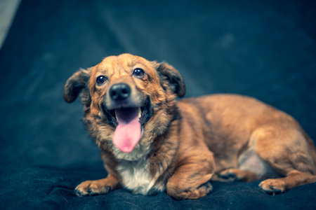 Portrait of a beautiful mongrel dog in a studio.