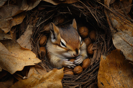 Cozy Nest of a Hibernating Chipmunk Surrounded by Nature