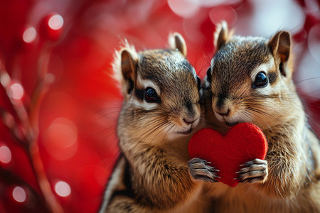 two chipmunk with a red heart on a red background.