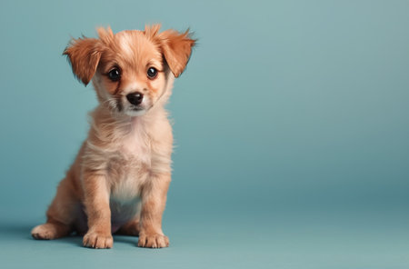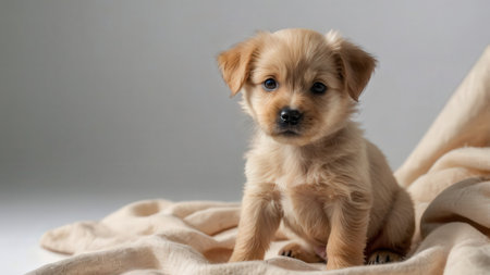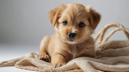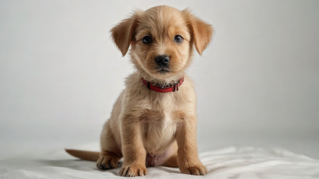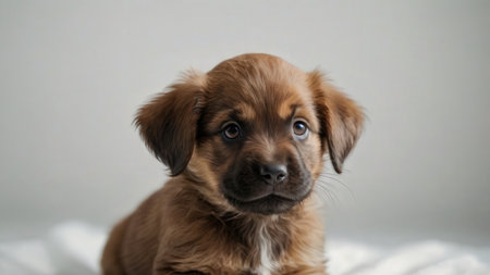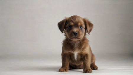 This adorable puppy sits against a plain background, exuding innocence and charm. Perfect for pet-themed projects, this image captures the essence of warmth and companionship.