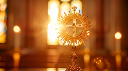 Generative AI : Corpus christi Ostensory for worship for Catholic church ceremony