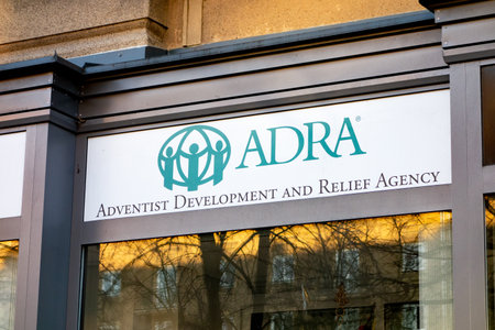 OSTRAVA CZECHIA - DECEMBER 11, 2019: The Adra (Adventist Development and Relief Agency) charity shop which sells product to support poor people in need