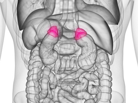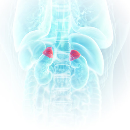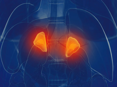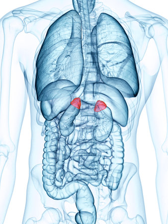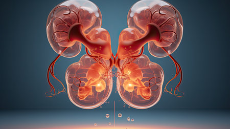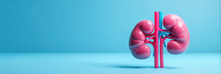 Detailed 3D render of healthy human kidneys set against a clean blue background, showing anatomical features clearly and effectively.