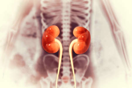 Human Urinary System Kidneys with Bladder Anatomy For Medical Concept 3D Illustration
