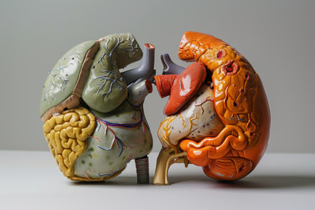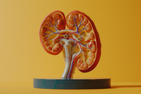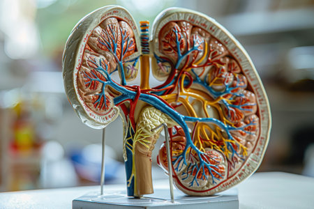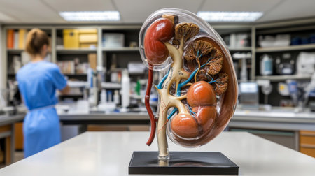Human kidney model displayed in a laboratory setting, highlighting renal structure and function.