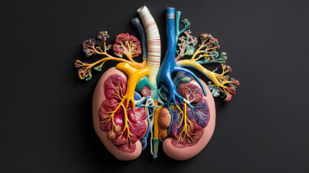 This detailed anatomical model represents the human kidney system, showcasing essential structures for educational purposes in biology and medical training.