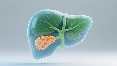 Vibrant Digital Illustration of Human Liver. Generative AI.