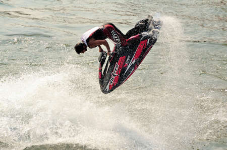 Ales - France - on July 14th, 2013 - Championship of France of Jet Ski on the river Gardon. lifting category or freestyle