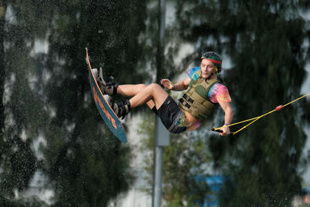 Young athlete Of Thailand is practicing sportWater Board at the wake park canal 6 on October 7, 2018.