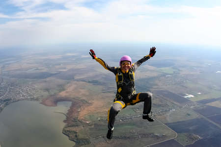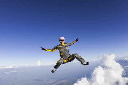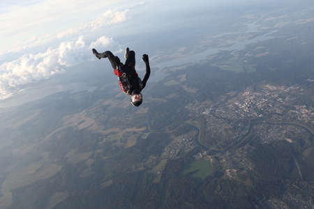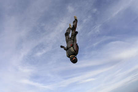 Skydiving. Freefly jump. A skydiver is falling in headdown position.