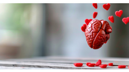Feelings and mind concept. Brain plus heart on white background. Top view.
