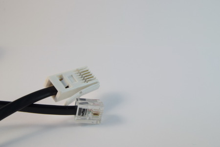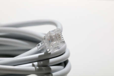 Close up shot of a telephone cable with socket, analog data transmit wire