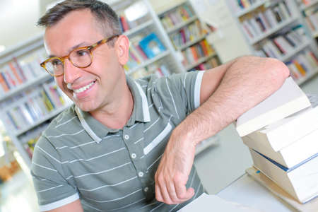 Confident professor or school teacher looking in open book while explaining his students new subject or making speech at lesson