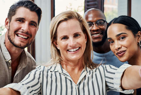 The team you need. Cropped portrait of a group of business colleagues taking selfies in the office.